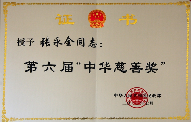 公司董事長(zhǎng)榮獲第六屆中華慈善獎(jiǎng)