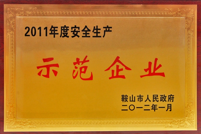 公司被鞍山市政府授予“2011年度安全生產(chǎn)示范企業(yè)”
