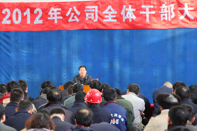 2012年1月11日,公司在網(wǎng)球場召開全體干部大會(huì),總經(jīng)理做上年度工作總結(jié)及當(dāng)前形勢分析,董事長做題為“全面提升企業(yè)綜合實(shí)力  蓄勢待發(fā)  穩(wěn)中求進(jìn)”的重要講話。