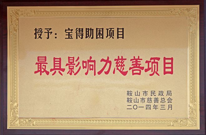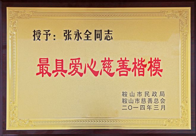 3月7日,在鞍山市慈善總會(huì)第三次會(huì)員大會(huì)上,公司榮獲“最具愛(ài)心慈善捐贈(zèng)企業(yè)”、“最具影響力慈善項(xiàng)目”榮譽(yù),董事長(zhǎng)榮獲“最具愛(ài)愛(ài)心慈善楷模”榮譽(yù)稱(chēng)號(hào)。