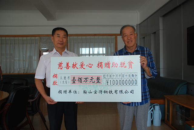 9月1日,《中華人民共和國(guó)慈善法》正式頒布實(shí)施的當(dāng)天下午,鞍山寶得鋼鐵公司的一位代表風(fēng)塵仆仆來(lái)到市慈善總會(huì),捐出專(zhuān)項(xiàng)善款100萬(wàn)元,并轉(zhuǎn)達(dá)了寶得公司董事長(zhǎng)張永全的話(huà):“我要兌現(xiàn)承諾,只要企業(yè)經(jīng)濟(jì)效益好了,只要我們還有這個(gè)能力,就要繼續(xù)獻(xiàn)愛(ài)心,就要幫助那些有困難的人。”